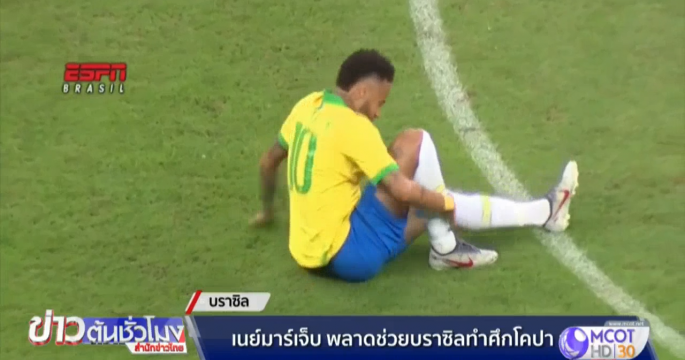 เนย์มาร์ ซูเปอร์สตาร์ทีมชาติบราซิลอดลงเล่นให้กับทีมชาติในการแข่งขันฟุตบอลโคปาอเมริกาแล้ว หลังจากเอ็นข้อเท้าขวาฉีกระหว่างลงสนามนัดอุ่นเครื่องกับกาตาร์ที่ชนะไป 2-0 ประตู