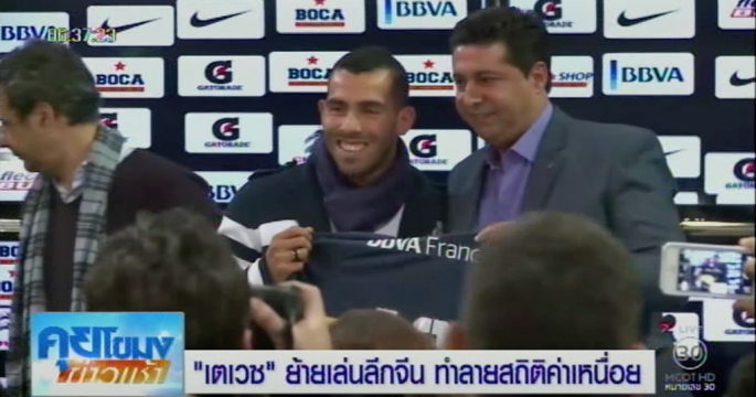 คาร์ลอส เตเวซ กองหน้าทีมชาติอาร์เจนตินา ย้ายไปค้าแข้งกับทีมเซี่ยงไฮ้ กรีนแลนด์ เสิ่นหัว โดยเป็นนักฟุตบอลรับเงินค่าเหนื่อยสูงที่สุดในโลก 27 ล้านบาทต่อสัปดาห์