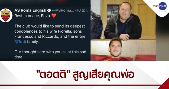 ฟรานเชสโก ตอตติ อดีตดาวยิงทีมชาติอิตาลี และโรมา สุดเศร้า หลังต้องเสีย เอ็นโซ ตอตติ บิดาวัย 76 ปี จากการติดเชื้อ “โควิด-19”