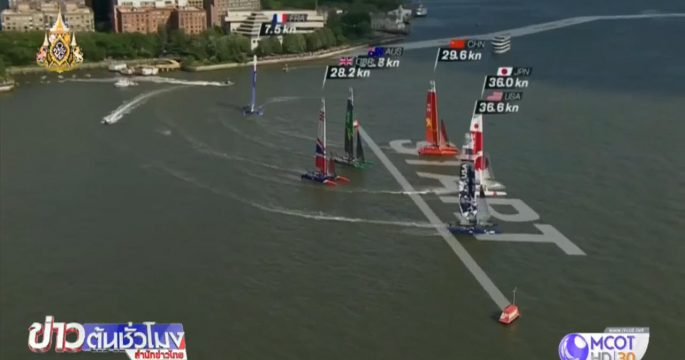 การแข่งขันเรือใบ รายการ นิวยอร์ก เซียวจีพี (NewYork SailGP) ซีซั่น 1 สนามที่ 2 ที่แม่น้ำฮัดสัน (Hudson River) นิวยอร์ก สหรัฐอเมริกา มี 6 ทีมเข้าร่วม