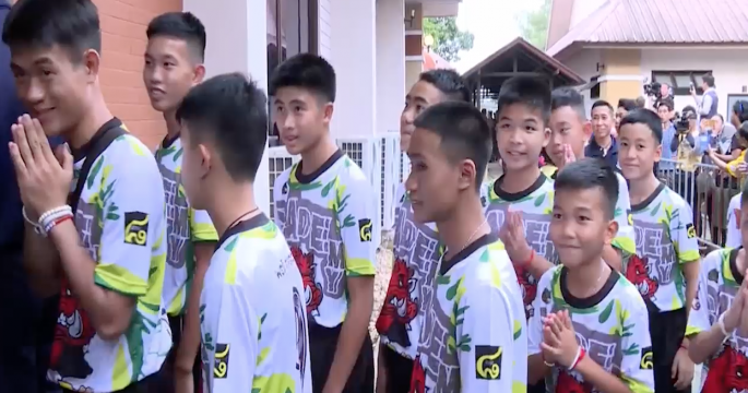โค้ชเอกและน้องๆ หมูป่าอะคาเดมีรวม 12 คน เข้าสู่พิธีบรรพชาและอุปสมบท ที่วัดพระธาตุดอยตุง ที่เชียงรายแล้ว เพื่อทดแทนพระคุณผู้ที่ช่วยเหลือออกจากถ้ำหลวง