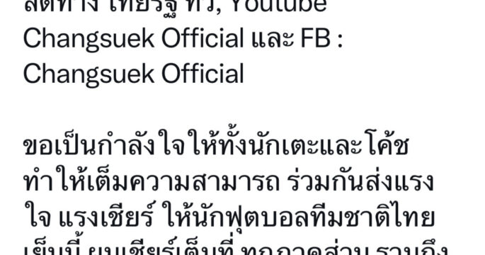 นายกฯ เชิญชวนชาวไทยส่งใจเชียร์นักเตะลูกหนังทีมชาติไทยฟาดแข้งกับเกาหลีใต้เย็นนี้ ฝากถึง “เจ ชนาธิป” สะกิดเพื่อน มีสมาธิ ตั้งใจตลอดเกมส์ เอาแต้มกลับบ้าน