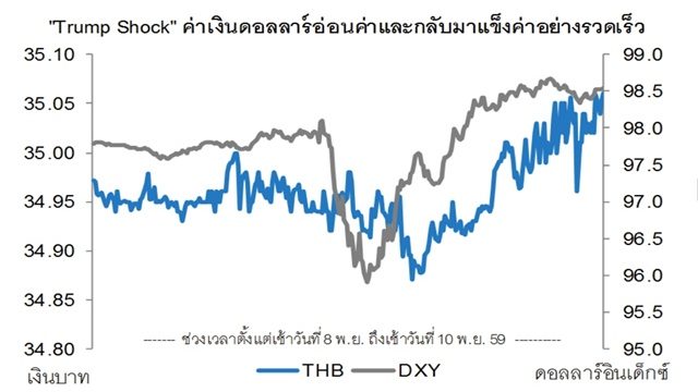 ทีเอ็มบีชี้นโยบาย” ทรัมป์ ” และ BREXIT กดดันตลาดอัตราแลกเปลี่ยนผันผวน คาดเงินบาทแกว่งระหว่าง 35.50-36.80 บาทต่อดอลลาร์สหรัฐ ขณะที่ประเมินเศรษฐกิจไทยขยายตัวร้อยละ 3.5