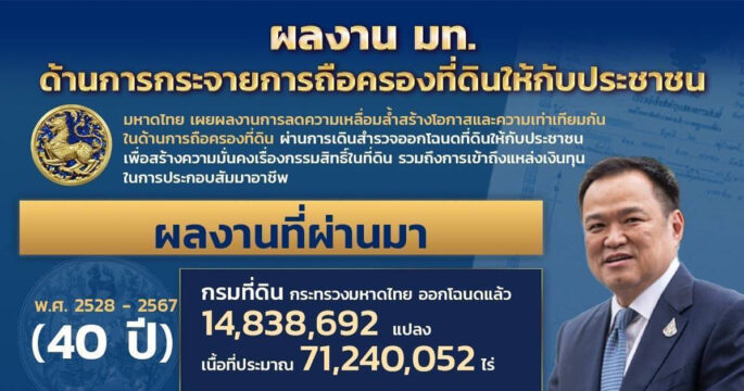 ปีงบประมาณ 68 ออกโฉนดที่ดินคืบหน้า 53,437 แปลง