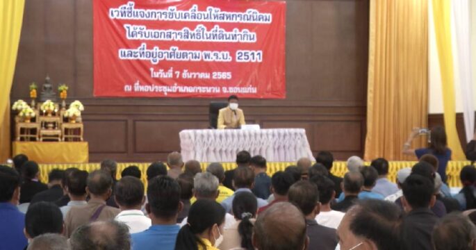 นายทวิช พิมพะ นายอำเภอกระนวน จ.ขอนแก่น เป็นประธานเปิดเวทีชี้แจงการขับเคลื่อนให้นิคมสหกรณ์ได้ที่ดินทำกินตาม พ.ร.บ.2511