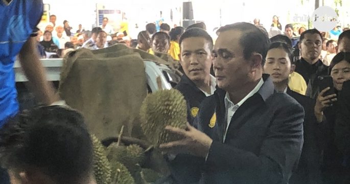 นายกฯตรวจเยี่ยมโครงการบริหารจัดการทุเรียนคุณภาพ หยอดคำหวานขอประชาชนรักตนเอง และรักรัฐมนตรีใหม่ด้วย ชูเมืองยะลาเป็นเมืองทุเรียนใต้ ทดลองเป็นพนักงานตรวจทุเรียน โดนหนามตำมือเลือดออก