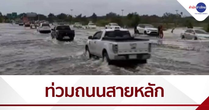ฝนตกหนักทำเอ่อล้นท่วมถนนใน อ.ศรีราชา