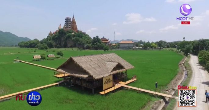 ร้านก๋วยเตี๋ยวห้อยขากลางทุ่งนาเขียวขจี ในพื้นที่ อ.ท่าม่วง จ.กาญจนบุรี กำลังกลายเป็นจุดท่องเที่ยว และจุดเช็คอินน์ยอดฮิตแห่งใหม่ของจังหวัด