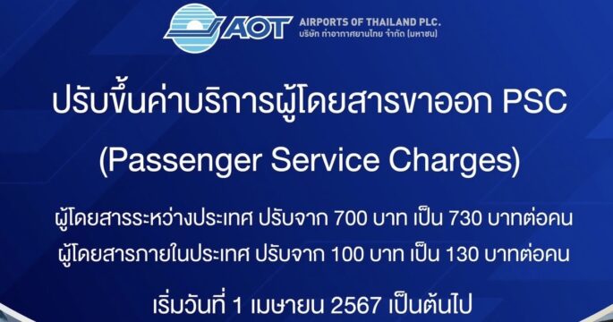 AOT ปรับเพิ่มค่าบริการผู้โดยสารขาออก