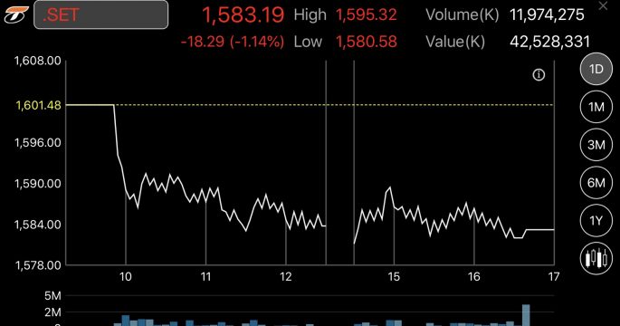 หุ้นไทยร่วง 18.29 จุด ตามตลาดต่างประเทศ หลังสัญญาณเศรษฐกิจโลกชะลอตัว จับตาประชุมเฟด และกนง.พรุ่งนี้ คาดขยับดอกเบี้ยขึ้นร้อยละ 0.25