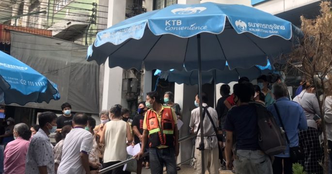 กรุงเทพฯ 15ก.พ. – วันแรกเปิดรับลงทะเบียน “เราชนะ” สำหรับกลุ่มไม่มีสมาร์ทโฟน – กลุ่มเปราะบาง ที่ธนาคารกรุงไทย มีประชาชนเดินทางไปลงทะเบียนจำนวนมาก ต่อแถวยาว ช่วงแกระบบมีปัญหา ทำให้หลายคนไม่พอใจ แต่สุดท้ายก็แก้ไขระบบให้ลงทะเบียนได้ปกติ ผู้สื่อข่าวรายงานว่า การลงทะเบียนโครงการ”เราชนะ”กลุ่มไม่มีสมาร์ทโฟน – กลุ่มเปราะบาง หรือกลุ่มต้องการความช่วยเหลือเป็นพิเศษ เช่น ผู้สูงอายุ ผู้พิการ ที่ได้รับผลกระทบจากการแพร่ระบาดของโควิด-19 ได้มีประชาชนกลุ่มดังกล่าวทยอยเดินทางไปต่อคิวเพื่อลงทะเบียนอย่างต่อเนื่อง หลายคนมาถึงตั้งแต่ธนาคารยังไม่เปิดทำการ เช่นที่ ธนาคารกรุงไทย สาขาเซ็นต์หลุยส์ ซอย 3 มีประชาชนนับร้อยคนมาต่อแถวรอคิวเข้าลงทะเบียนกับเจ้าหน้าที่ ส่วนใหญ่เป็นผู้สูงอายุ และไม่มีโทรศัพท์แบบสมาร์ทโฟน บางคนเดินทางมาเองไม่ไหว ต้องให้ลูกหลานพามา โดยคนที่ได้คิวแรกมาถึงตั้งแต่เวลา 05.00น. รอจนถึงเวลาธนาคารเปิดทำการ และให้เข้าไปภายในธนาคารรอบละ 4 คน จนถึงเวลาเริ่มลงทะเบียนแต่ก็ยังลงทะเบียนไม่ได้ เนื่องจากเจ้าหน้าที่แจ้งว่าระบบล่ม ขณะที่คนที่ต่อแถวรอคิวอยู่นอกธนาคารได้แสดงความไม่พอใจ หลายคนต้องทิ้งบัตรคิวกลับไปพักที่บ้านก่อน อย่างไรก็ตาม ต่อมา ระบบของธนาคารสามารถกลับมาใช้งานได้ปกติ ทำให้ผู้ที่ยังต่อแถวรอคิวลงทะเบียนกลับมามีความหวังและยิ้มได้อีกครั้ง เช่น นางจรัส โฆษิตชาติ อายุ 62 ปี […]