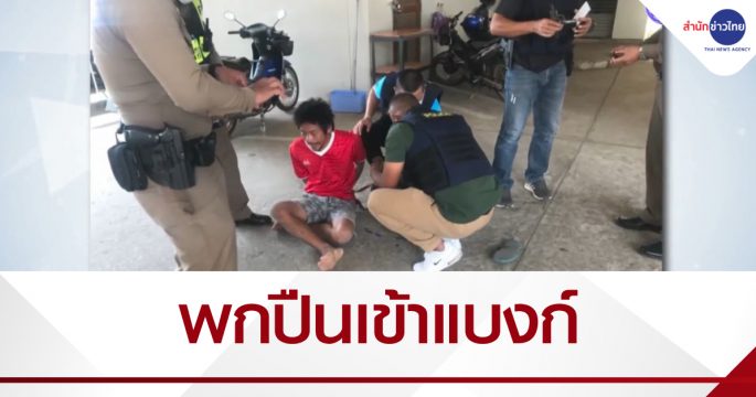 ชายวัย 38 ปี มีอาการคล้ายเมาสุรา และพกอาวุธปืนเข้าธนาคาร ตำรวจขอตรวจค้นทำยึกยัก ต้องใช้กำลังรวบตัว