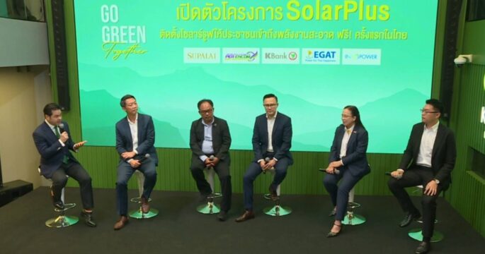 ธนาคารกสิกรไทยจับมือการไฟฟ้าฝ่ายผลิตแห่งประเทศไทย บริษัท พีอีเอ เอ็นคอม สมาร์ท โซลูชั่น จำกัด บริษัท ศุภาลัย จำกัด (มหาชน) และบริษัท อินโนพาวเวอร์ จำกัด เดินหน้า GO GREEN Together เปิดตัวโครงการ SolarPlus ติดตั้งโซลาร์รูฟให้แก่ประชาชนฟรี เพื่อผลิตและขายไฟฟ้าเป็นครั้งแรกในไทย ตั้งเป้า 500,000 หลังทั่วประเทศ ภายใน 5 ปี