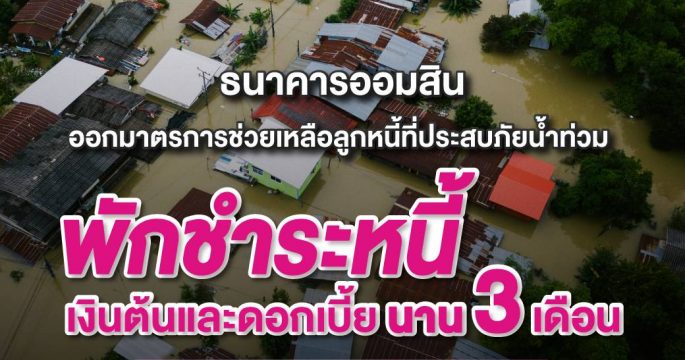 ผอ.ธนาคารออมสิน ออกมาตรการพักชำระหนี้ ช่วยเหลือลูกหนี้ประสบภัยน้ำท่วม ที่สาขาธนาคารออมสินในพื้นที่ ตั้งแต่บัดนี้ หรือสอบถามข้อมูลเพิ่มเติมที่ GSB Contact Center โทร.1115