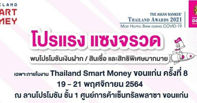 ออมสินร่วมกับ Thailand Smart Money ขอนแก่น กระตุ้นเศรษฐกิจภาคอีสาน จัดโปรโมชั่นเงินฝากเผื่อเรียกพิเศษดอกเบี้ยสูงสุด 10.80% ต่อปี เทียบเท่าฝากประจำ 3.00% ต่อปี ดอกเบี้ยบ้านปีแรก 0.250% สินเชื่อ SMEs ดอกเบี้ยต่ำสุด 2 ปีแรก 2.99%