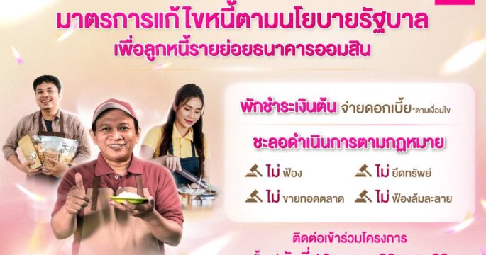 กรุงเทพฯ 12 ต.ค.-ออมสิน จัดโครงการเฉลิมพระเกียรติเนื่องในวันนวมินทรมหาราช พักชำระเงินต้น จ่ายดอกเบี้ย ตามเงื่อนไข ลูกหนี้ NPLs ไม่ฟ้อง ไม่ยึดทรัพย์ ไม่ขายทอดตลาด ไม่ฟ้องล้มละลาย เริ่ม 13 ตุลาคมนี้ ธนาคารออมสิน ขานรับนโยบายรัฐบาลมอบหมายให้ทุกภาคส่วนเร่งช่วยเหลือแก้ปัญหาหนี้ภาคประชาชน ธนาคารจึงได้จัดโครงการเฉลิมพระเกียรติเนื่องในวันนวมินทรมหาราช วันที่ 13 ตุลาคม 2566 โดยออกมาตรการให้ความช่วยเหลือลูกหนี้ที่ได้รับผลกระทบโควิด-19 ที่ประสบปัญหาการผ่อนชำระ และลูกหนี้บางส่วนที่มีสถานะ NPLs จากผลกระทบดังกล่าว โดยจะเปิดให้เข้าร่วมโครงการได้จนถึงวันที่ 30 ธันวาคม 2566 มาตรการแก้ไขหนี้ดังกล่าวเพื่อช่วยเหลือลูกค้ารายย่อยสินเชื่อธนาคารออมสิน ด้วยการให้พักชำระเงินต้น และมีทางเลือกจ่ายดอกเบี้ยตั้งแต่ 25% – 100% แล้วแต่กรณี ตามเงื่อนไขธนาคารและสถานะของลูกหนี้แต่ละราย เมื่อสามารถผ่อนชำระได้ตามเงื่อนไขของมาตรการ ธนาคารจะยกเว้นดอกเบี้ยค้างชำระก่อนเข้ามาตรการให้ รวมถึงลูกหนี้ที่มีสถานะ NPLs อยู่ก่อนวันที่ 30 ธันวาคม 2565 ธนาคารจะชะลอ การดำเนินคดี โดยไม่ฟ้อง ไม่ยึดทรัพย์ ไม่ขายทอดตลาด และไม่ฟ้องล้มละลาย แล้วแต่กรณี […]
