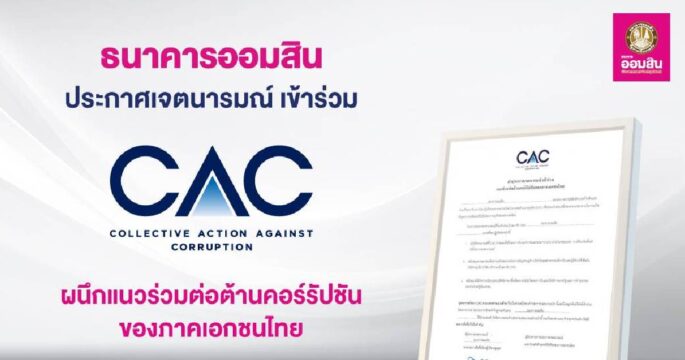 “ออมสิน” ประกาศเจตนารมณ์ ร่วม CAC ต่อต้านคอร์รัปชัน หวังขยายเครือข่ายดำเนินธุรกิจโปร่งใส
