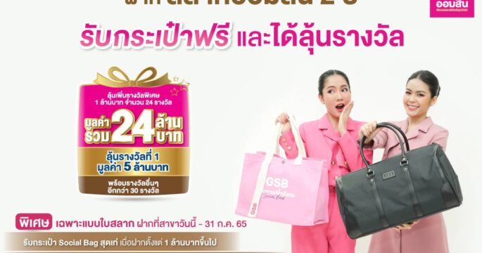 ธนาคารออมสิน กระตุ้นแคมเปญสลากออมสินด้วยการเพิ่มรางวัลพิเศษ ฝากสลากออมสิน 2 ปี วันนี้ รับกระเป๋าฟรี