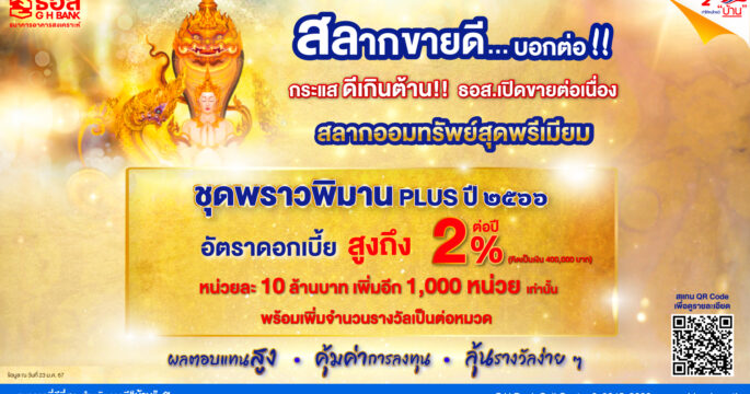กระแสตอบรับดี! สลากออมทรัพย์ ชุดพราวพิมาน Plus ปี 2566 ธอส.เตรียมเปิดจำหน่ายเพิ่มอีก 10,000 ล้านบาท