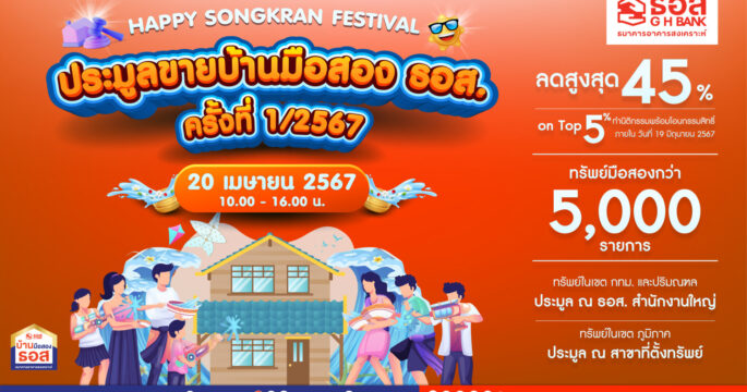 กรุงเทพฯ 5 เม.ย.- ธอส.ประมูลขายบ้านมือสอง ทรัพย์เด่น ทำเลดี 5,000 รายการ ลดราคาสูงสุดถึง 45% On top อีก 5%* ธนาคารอาคารสงเคราะห์ เพิ่มทางเลือกให้คนอยากมีบ้าน จัดงานประมูลขายบ้านมือสอง ธอส. ประจำปี ครั้งที่ 1/2567 ในวันเสาร์ที่ 20 เมษายน 2567 เวลา 10.00 – 16.00 น. พบกับบ้านมือสอง ธอส. ทำเลดี มากกว่า 5,000 รายการทั่วประเทศ มาประมูลขายในราคาลดพิเศษสูงสุดถึง 45% On top อีก 5% (เงื่อนไขเป็นไปตามที่ธนาคารกำหนด) เปิดประมูลในราคาต่ำสุดเพียง 55,000 บาท เท่านั้น พิเศษ!! ผู้ชนะการประมูลสามารถขอสินเชื่อบ้านอัตราดอกเบี้ยต่ำสุด นานสูงสุด 24 เดือน ผู้ที่สนใจสามารถลงทะเบียนเข้าร่วมประมูลล่วงหน้าผ่านช่องทางออนไลน์ https://crm.ghbank.co.th/survey/bitnpa ตั้งแต่วันนี้ […]
