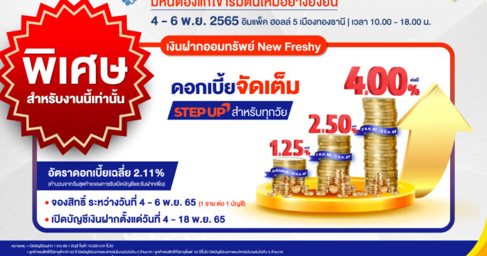 ธอส. เปิดจองสิทธิ์เงินฝากออมทรัพย์ New Freshy รับผลตอบแทนสูงสุด 4.00% ต่อปี เฉพาะในงานมหกรรมร่วมใจแก้ไขหนี้ฯ 4-6 พฤศจิกายน 2565 นี้เท่านั้น