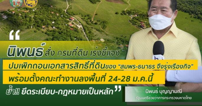 นิพนธ์ สั่ง กรมที่ดิน เร่งชี้แจงคืบหน้า ปมเพิกถอนเอกสารสิทธิ์ ที่ดิน 60 แปลง ของ สมพร-ธนาธร จึงรุ่งเรืองกิจ ย้ำยึดระเบียบ-กฎหมายเป็นหลัก