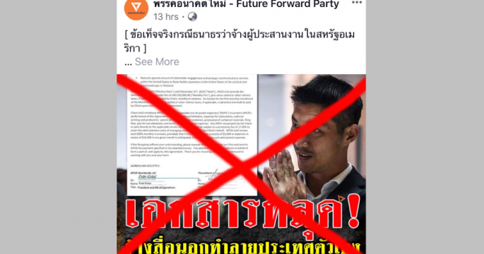 พรรคอนาคตใหม่ออกแถลงการณ์ ไม่ใช่เอกสารหลุด ยอมรับ “ธนาธร” จ้าง APCO อเมริการจริงในนามส่วนตัว เพื่อประสานงานและจัดทำข้อมูลการเดินทางเยือนสหรัฐฯ ระหว่าง 12-16 ก.ค.ที่ผ่านมาเท่านั้น ไม่เกี่ยวกับการสร้างสถานการณ์ใดๆ ตามที่ถูกกล่าวหา