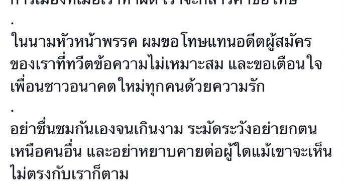 “ธนาธร” โพสต์เฟซบุ๊ก ขอโทษแทนลูกพรรค กรณีทวีตข้อความติดแฮชแท็ก ส.ส.ตลาดล่าง เตือนอย่ายกตนเหนือคนอื่น