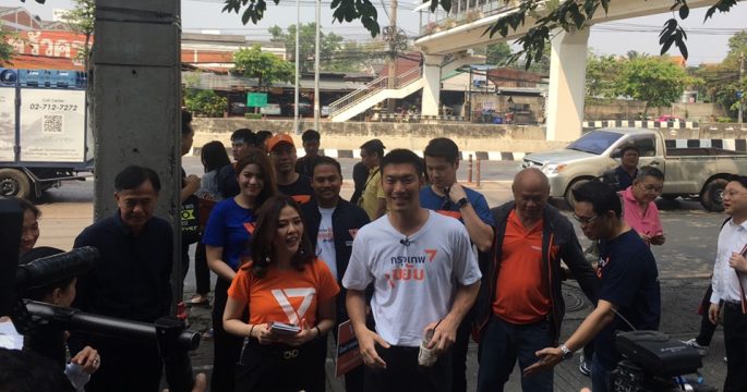 หัวหน้าพรรคอนาคตใหม่ พร้อมแกนนำพรรค ลงพื้นที่ย่านพระราม 3 แนะนำว่าที่ผู้สมัคร ขอโอกาสให้คนรุ่นใหม่แก้ไขประเทศ มั่นใจได้ที่นั่งในสภาฯ เกิน 50 ที่นั่งแน่นอน