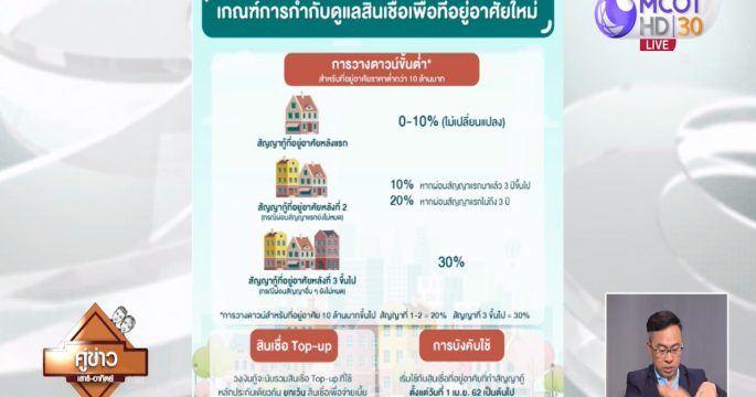 นายแบงก์ และ ผู้ประกอบอสังหาริมทรัพย์ ขอ ธปท. ผ่อนเกณฑ์คุมสินเชื่อบ้าน เป็นหลัง 3 วางดาวน์ร้อยละ 20 พร้อมเลื่อนการบังคับใช้ออกไป