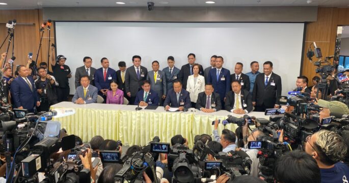 พรรคร่วมฯ ใหม่ ตบเท้าร่วมแถลงข่าวจัดตั้งรัฐบาลกับ “ภูมิใจไทย”