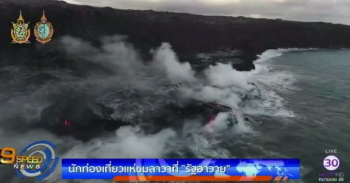 นักท่องเที่ยวจำนวนมากแห่ชมธารลาวาจากภูเขาไฟคิลาเว ในรัฐฮาวายของสหรัฐ ที่ค่อยๆ ไหลลงสู่ท้องทะเล เป็นระยะทางถึง 16 กม.