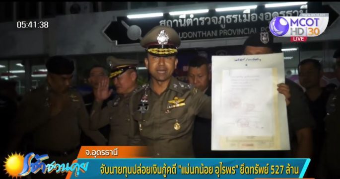 “พล.ต.ท.สุรเชษฐ์” ผบช.สตม. แถลงจับ “เสี่ยตี๋” นายทุนเงินกู้เมืองอุดรฯ มีผู้เสียหายนำโฉนดที่ดินมาจำนองนับ 10 ราย รวมทั้งนักธุรกิจหญิงคู่กรณี “นกน้อย อุไรพร” หมอลำดัง โดยเจ้าหน้าที่ยึดอายัดทรัพย์สินไว้ตรวจสอบ รวมมูลค่า 527 ล้านบาท