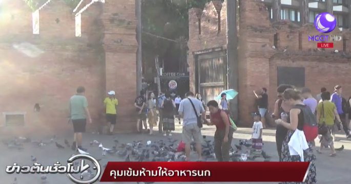 ตำรวจและเทศกิจเทศบาลนครเชียงใหม่ คุมเข้มบริเวณลานประตูท่าแพ ป้องกันพ่อค้าแม่ค้าแอบขายอาหารนกให้กับนักท่องเที่ยวชาวจีน พร้อมนำป้ายมาติดห้ามขายและให้อาหารนกพิราบ