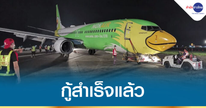 เจ้าหน้าที่กู้เครื่องบินนกแอร์ที่ไถลออกนอกรันเวย์ สนามบินแม่ฟ้าหลวง เชียงราย ขึ้นมาได้แล้ว คาดเปิดรันเวย์ได้เร็วขึ้น หลังเกิดอุปสรรคระหว่างเคลื่อนย้าย เนื่องจากฝนตกหนัก จนสนามบินต้องประกาศขยายเวลาปิดรันเวย์ จากวันที่ 3 ส.ค. เป็นวันที่ 5 ส.ค.