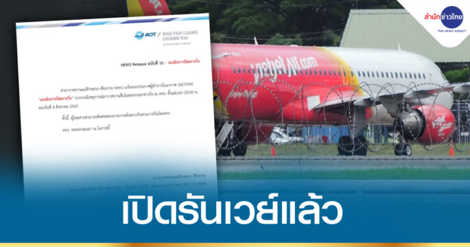ท่าอากาศยานแม่ฟ้าหลวง เชียงราย แจ้งยกเลิกการปิดทางวิ่ง เที่ยวบินแรก คือ สายการบินไทยเวียตเจ็ทแอร์ VZ135 เชียงราย-สุวรรณภูมิ ไม่มีผู้โดยสาร