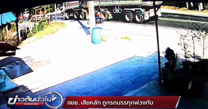 รถจักรยานยนต์ เสียหลักล้มบริเวณถนนสายนครชัยศรี-วัดละมุด อ.นครชัยศรี จ.นครปฐม ขณะรถบรรทุกพ่วงผ่านมาพอดี ทับศีรษะคนขับจนเสียชีวิต