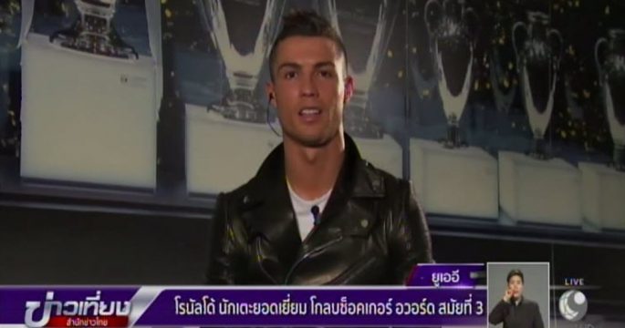 คริสเตียโน โรนัลโด ตั้งเป้ากวาดทุกรางวัลในฤดูกาลหน้า หลังจากล่าสุดเพิ่งคว้ารางวัลนักเตะยอดเยี่ยมแห่งปีของโกลบซ็อคเกอร์ อวอร์ด สมัยที่ 3