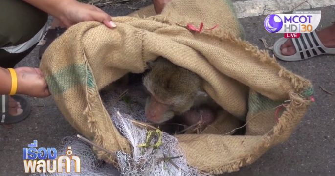 ชาวบ้านและกู้ภัยช่วยกันจับลิงขนาดใหญ่หลุดเข้าไปในชุมชน ที่จ.นครนายก เกรงว่าจะเป็นอันตราย