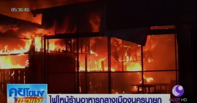 ไฟไหม้ร้านอาหารชื่อดังใจกลางเมืองนครนายกวอดทั้งร้าน ไม่มีผู้ได้รับบาดเจ็บ สาเหตุคาดไฟฟ้าลัดวงจร