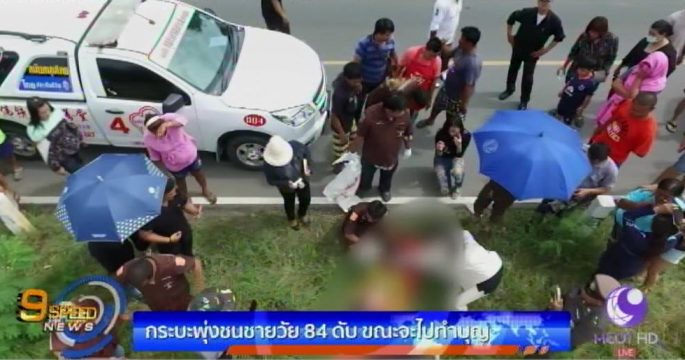 ชายวัย 84 ปี ปั่นจักรยานจะไปร่วมพิธีเททองหล่อพระที่วัดพะเนียงแตก จ.นครปฐม แต่ถูกกระบะชนท้าย กระเด็นตกคูน้ำเสียชีวิต