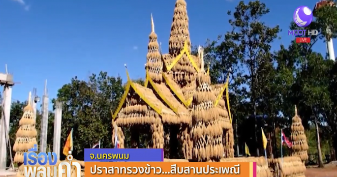 นักท่องเที่ยว ร่วมทำบุญกองข้าว สืบสานประเพณี พร้อมชื่นชมความสวยงามของปราสาทรวงข้าวที่วัดป่าคำสว่าง จ.นครพนม