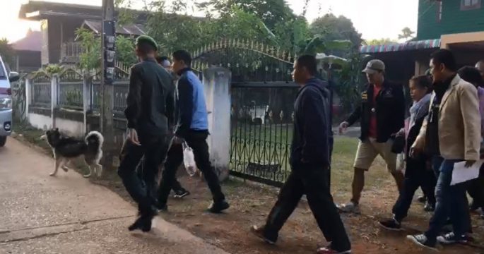 ตำรวจสกลนครคุมตัวนางจอมทรัพย์ แสนเมืองโคตร อดีตข้าราชการครู จากบ้านพักไปลงบันทึกประจำวันที่ สภ.โคกศรีสุพรรณ ก่อนเดินทางต่อไปยัง จ.นครพนม