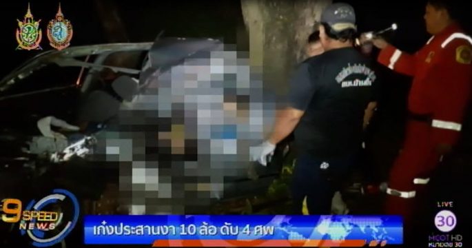 รถเก๋งชนประสานงารถพ่วง 10 ล้อ บนถนนสายนครพนม-สกลนคร ตาย 4 คน ส่วนคนขับรถบรรทุกหลบหนี