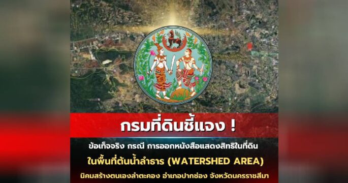กรมที่ดิน ชี้แจงกรณีการออกหนังสือแสดงสิทธิในที่ดิน พื้นที่ต้นน้ำลำธาร (WATERSHED AREA) นิคมสร้างตนเองลำตะคอง อ.ปากช่อง จ.นครราชสีมา