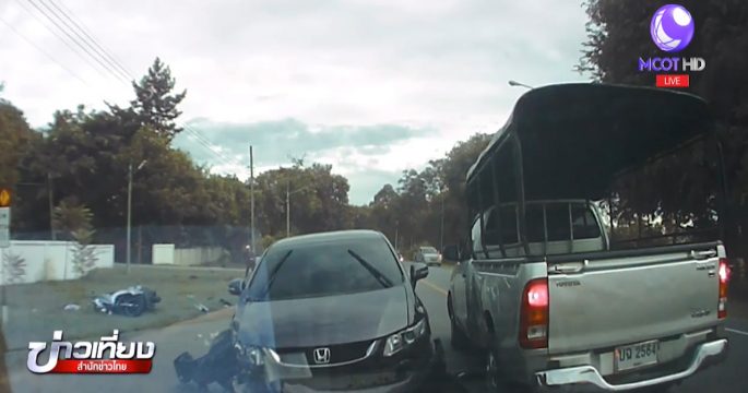 ภาพกล้องหน้ารถเผยวินาที รถชนสนั่นหลายคันเสียหายยับบน ถ.พิชัยสงคราม จ.นครราชสีมา เตือนขับรถเร็วชั่วโมงเร่งด่วน