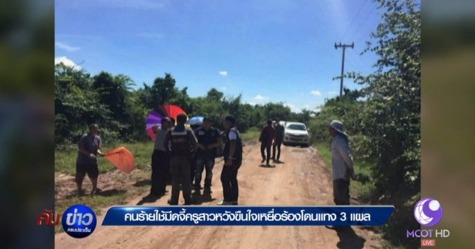 ล่าคนร้ายสักยันต์รอบคอ ถีบ จยย.หวังข่มขืนครูสาว ก่อนร้องขอความช่วยเหลือเจอมีดแทงเจ็บสาหัส