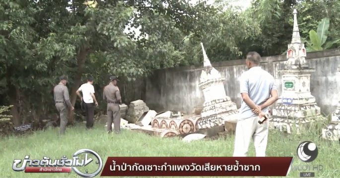 น้ำป่าจากที่ราบสูง ไหลกัดเซาะแนวกำแพงวัดป่ารังกาใหญ่ อ.พิมาย จ.นครราชสีมา พังเสียหาย วอนหน่วยงานที่เกี่ยวข้องเร่งแก้ปัญหาในระยะยาว