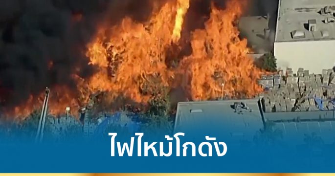 เพลิงไหม้โกดังในเขตอุตสาหกรรมเมืองคาร์สัน นครลอสแอนเจลิส เจ้าหน้าที่ดับเพลิงต้องใช้โฟมจำนวนมากเพื่อยังยั้งความรุนแรงของเปลวไฟ