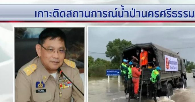 น้ำท่วมในจังหวัดนครศรีธรรมราชหลายจุดเริ่มลดลงแล้ว ส่วนถนนสายนครฯ-ร่อนพิบูลย์ อ.พระพรหม ต้องใช้รถทหารรับ-ส่งประชาชน